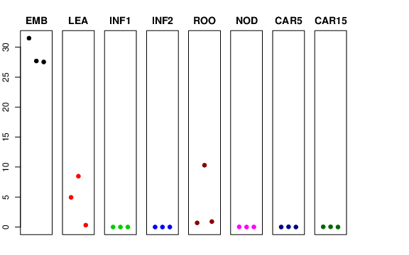 | ROO | Roots from the seedlings (10 cm shoot stage) | 0.693802 | 10.3092 | 0.909707 | 10.8189 |