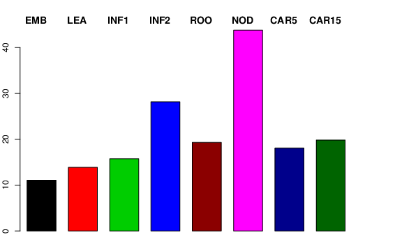 | NOD | Developing tillers at six leaf stage, 3rd internode | 11.6686 | 14.5626 | 14.3387 | 43.8112 |