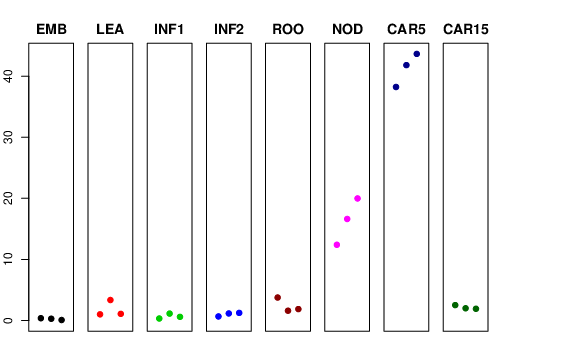 | ROO | Roots from the seedlings (10 cm shoot stage) | 3.76181 | 1.60472 | 1.87346 | 2.15248 |