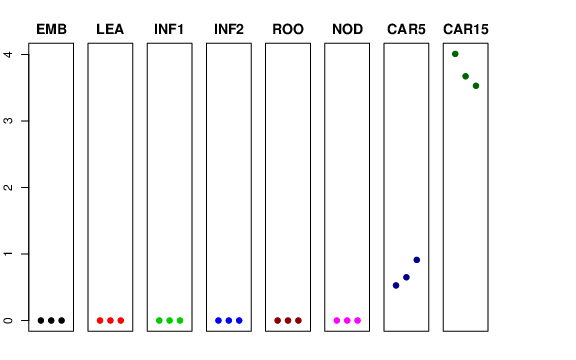 | ROO | Roots from the seedlings (10 cm shoot stage) | 0 | 0 | 0 | 0 |