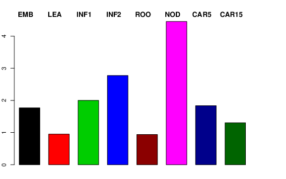 | ROO | Roots from the seedlings (10 cm shoot stage) | 0.618969 | 1.20507 | 0.626547 | 0.938679 |