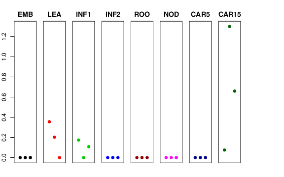 | ROO | Roots from the seedlings (10 cm shoot stage) | 0 | 0 | 0 | 0 |