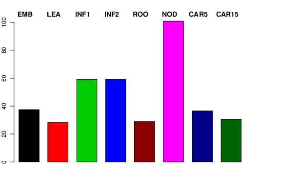 | NOD | Developing tillers at six leaf stage, 3rd internode | 19.1583 | 24.2915 | 28.4072 | 100.861 |