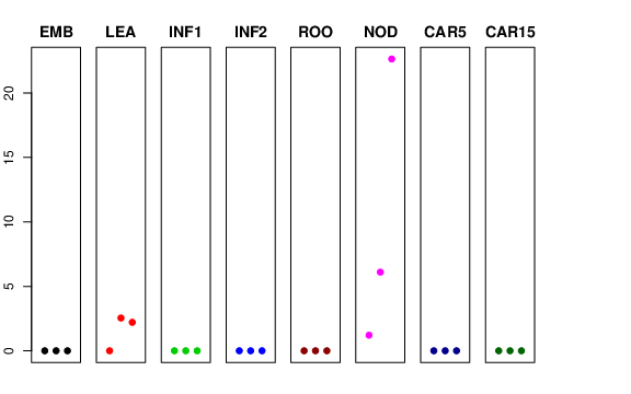 | ROO | Roots from the seedlings (10 cm shoot stage) | 0 | 0 | 0 | 0 |