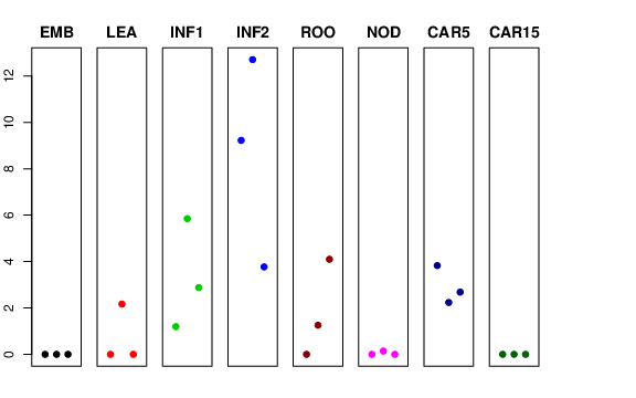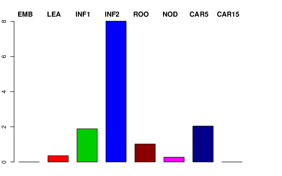 | ROO | Roots from the seedlings (10 cm shoot stage) | 0 | 1.25531 | 4.09793 | 1.02119 |