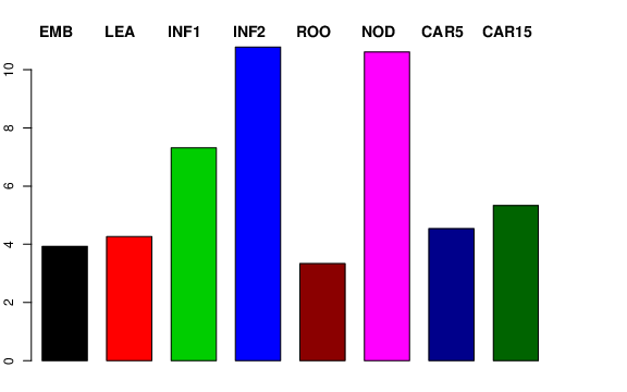 | ROO | Roots from the seedlings (10 cm shoot stage) | 1.69739 | 2.58656 | 2.12721 | 3.33744 |