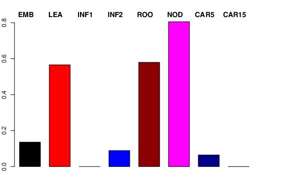 | ROO | Roots from the seedlings (10 cm shoot stage) | 0 | 0.464011 | 0.28553 | 0.57937 |