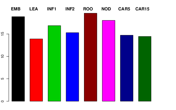 | ROO | Roots from the seedlings (10 cm shoot stage) | 15.2299 | 17.97 | 17.6005 | 19.6368 |
