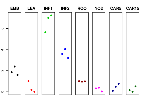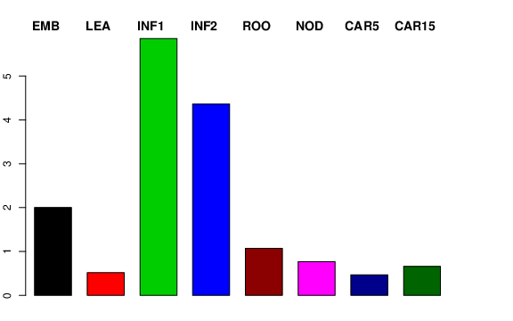 | ROO | Roots from the seedlings (10 cm shoot stage) | 0.994956 | 0.951355 | 0.981162 | 1.06911 |