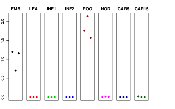 | ROO | Roots from the seedlings (10 cm shoot stage) | 1.75942 | 2.13762 | 1.57028 | 2.68411 |