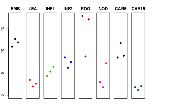 | ROO | Roots from the seedlings (10 cm shoot stage) | 17.888 | 8.75965 | 17.1222 | 10.3726 |