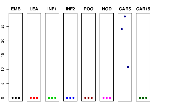 | ROO | Roots from the seedlings (10 cm shoot stage) | 0 | 0 | 0 | 0 |