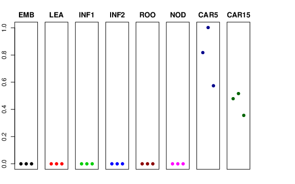 | ROO | Roots from the seedlings (10 cm shoot stage) | 0 | 0 | 0 | 0 |
