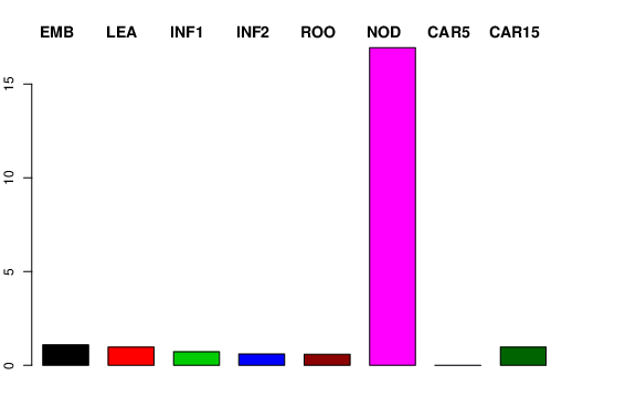 | CAR15 | Developing grain, bracts removed (15 DPA) | 1.32929e-05 | 0.374414 | 0.5129 | 0.972781 |