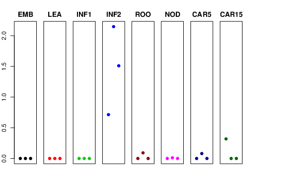 | ROO | Roots from the seedlings (10 cm shoot stage) | 0 | 0.0914661 | 0 | 0.275165 |