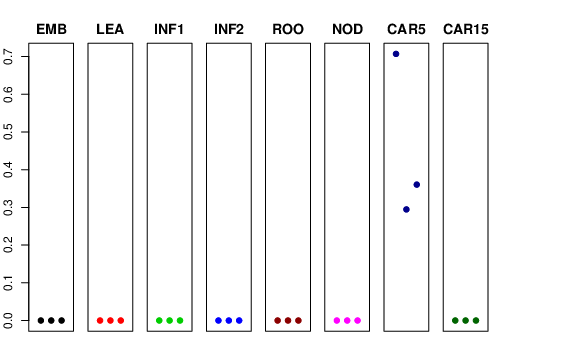 | ROO | Roots from the seedlings (10 cm shoot stage) | 0 | 0 | 0 | 0 |