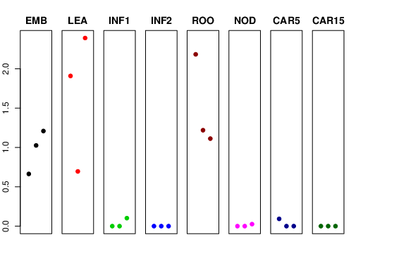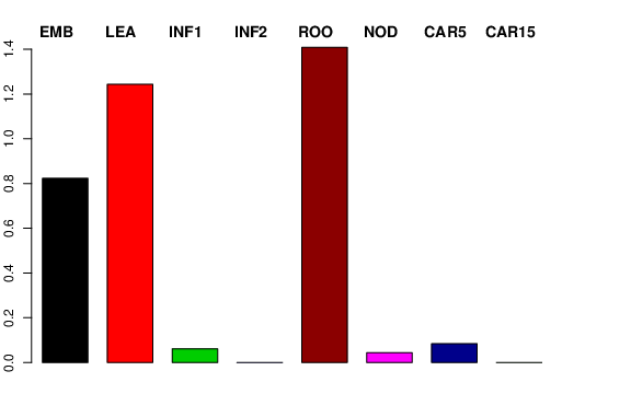 | ROO | Roots from the seedlings (10 cm shoot stage) | 2.18252 | 1.21862 | 1.11177 | 1.40884 |