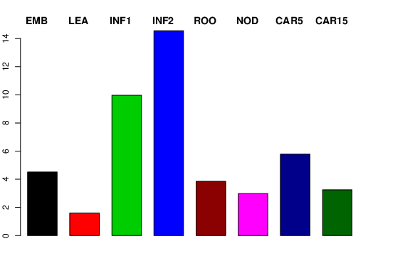 | ROO | Roots from the seedlings (10 cm shoot stage) | 2.07425 | 3.53276 | 2.85241 | 3.84699 |