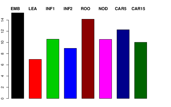 | ROO | Roots from the seedlings (10 cm shoot stage) | 7.1909 | 16.1603 | 13.6841 | 14.1524 |