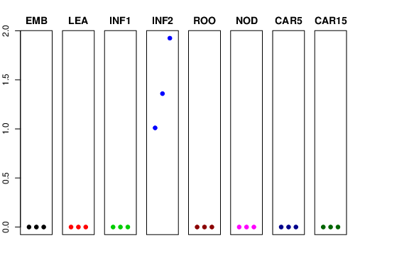 | ROO | Roots from the seedlings (10 cm shoot stage) | 0 | 0 | 0 | 0 |