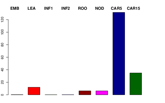 | ROO | Roots from the seedlings (10 cm shoot stage) | 19.6445 | 4.04565 | 1.81819 | 6.26022 |