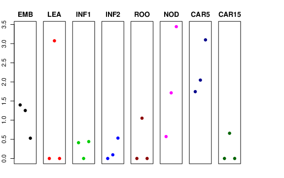 | ROO | Roots from the seedlings (10 cm shoot stage) | 0 | 1.05294 | 0 | 1.99931 |