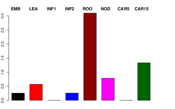 | ROO | Roots from the seedlings (10 cm shoot stage) | 3.80754 | 2.79774 | 1.56968 | 3.10358 |