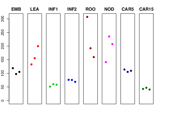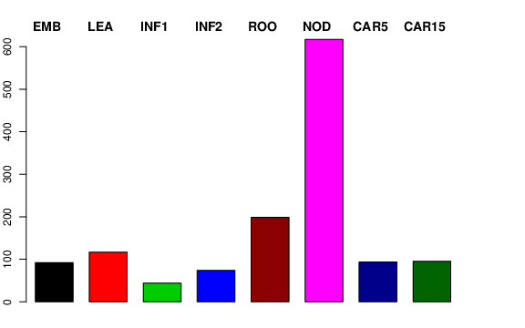 | NOD | Developing tillers at six leaf stage, 3rd internode | 141.069 | 235.265 | 207.175 | 617.357 |