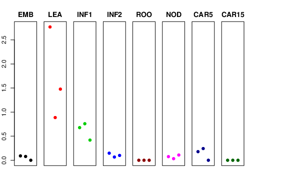 | ROO | Roots from the seedlings (10 cm shoot stage) | 0 | 0 | 0 | 0 |