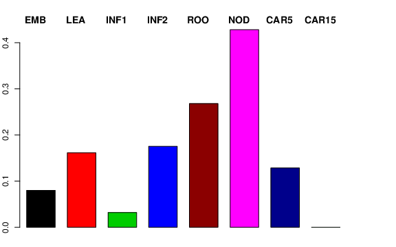 | ROO | Roots from the seedlings (10 cm shoot stage) | 0 | 0.0859478 | 0.273472 | 0.268081 |