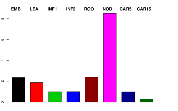 | ROO | Roots from the seedlings (10 cm shoot stage) | 3.57282 | 1.49007 | 1.03436 | 2.39429 |