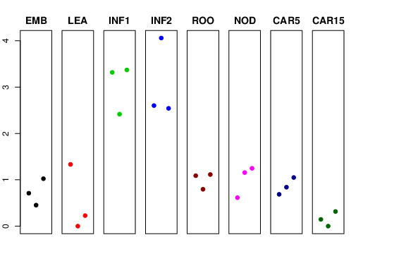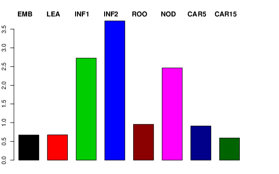 | ROO | Roots from the seedlings (10 cm shoot stage) | 1.08871 | 0.796219 | 1.11412 | 0.956797 |