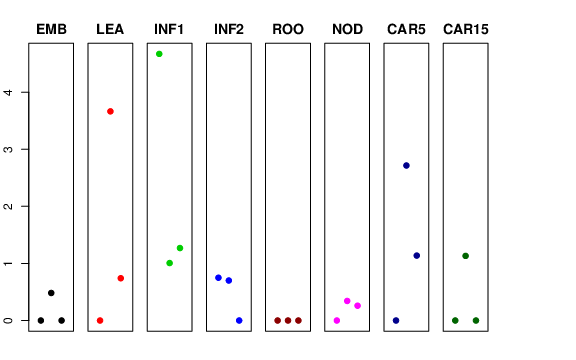 | ROO | Roots from the seedlings (10 cm shoot stage) | 0 | 0 | 0 | 0 |