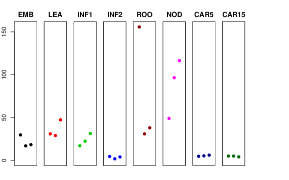 | ROO | Roots from the seedlings (10 cm shoot stage) | 155.712 | 30.8271 | 37.9234 | 67.6875 |