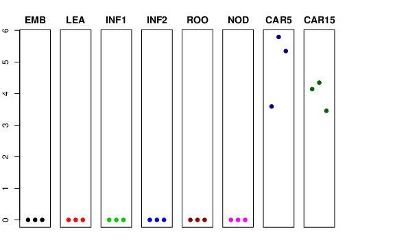 | ROO | Roots from the seedlings (10 cm shoot stage) | 0 | 0 | 0 | 0 |