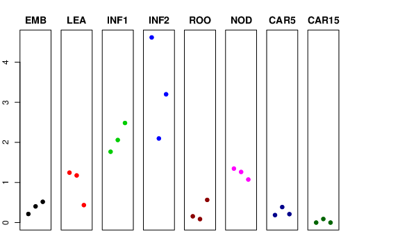 | ROO | Roots from the seedlings (10 cm shoot stage) | 0.156793 | 0.08697 | 0.565299 | 0.0964724 |