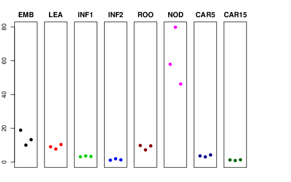 | ROO | Roots from the seedlings (10 cm shoot stage) | 9.80295 | 7.18572 | 9.58701 | 9.08325 |