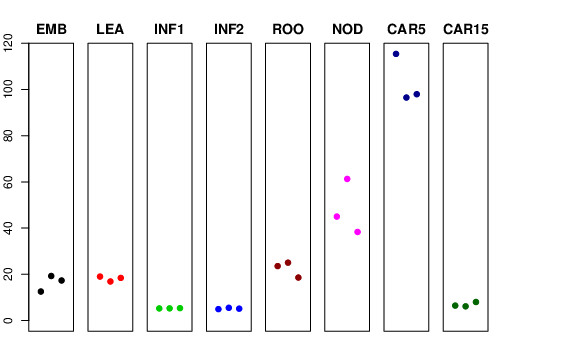 | ROO | Roots from the seedlings (10 cm shoot stage) | 23.5478 | 25.0418 | 18.5913 | 30.735 |