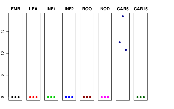| ROO | Roots from the seedlings (10 cm shoot stage) | 0 | 0 | 0 | 0 |