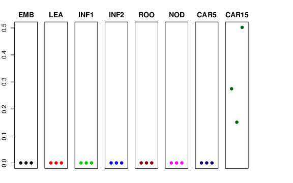 | ROO | Roots from the seedlings (10 cm shoot stage) | 0 | 0 | 0 | 0 |