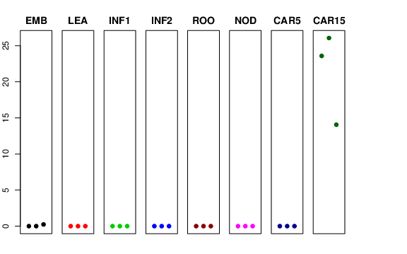 | ROO | Roots from the seedlings (10 cm shoot stage) | 0 | 0 | 0 | 0 |