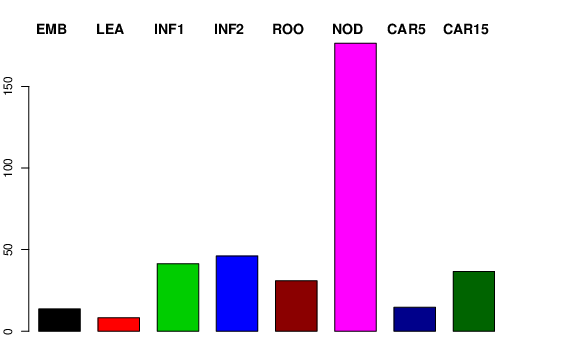 | NOD | Developing tillers at six leaf stage, 3rd internode | 38.1859 | 36.4382 | 111.9 | 176.473 |