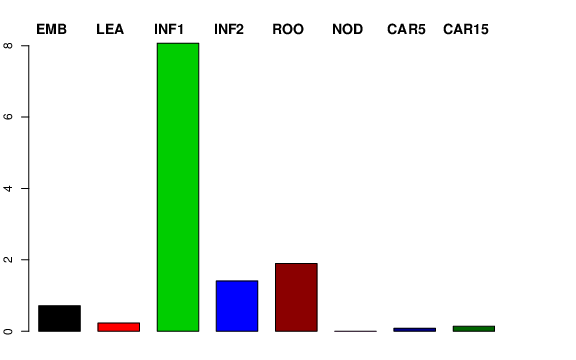 | ROO | Roots from the seedlings (10 cm shoot stage) | 1.22098 | 1.12424 | 1.43756 | 1.89473 |