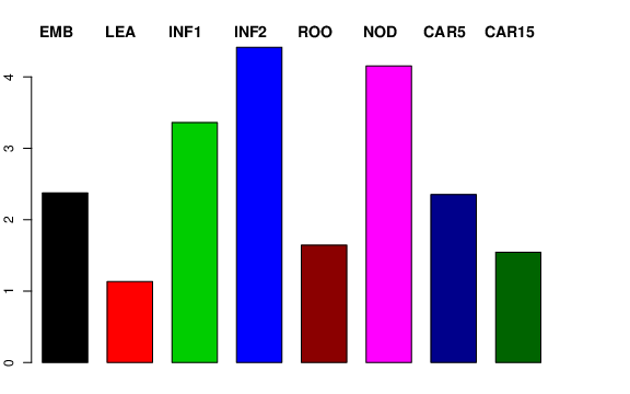 | ROO | Roots from the seedlings (10 cm shoot stage) | 1.64634 | 2.18503 | 2.39762 | 1.6444 |