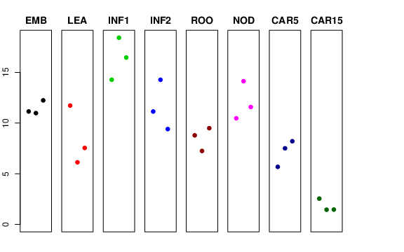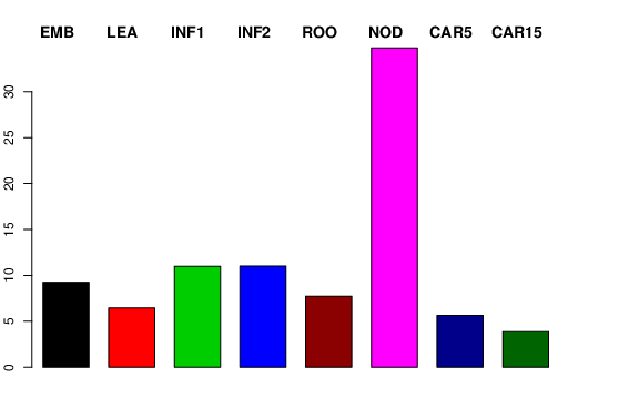 | ROO | Roots from the seedlings (10 cm shoot stage) | 8.78984 | 7.24507 | 9.49701 | 7.73417 |