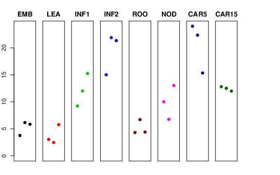 | ROO | Roots from the seedlings (10 cm shoot stage) | 4.31687 | 6.7057 | 4.39407 | 8.51999 |