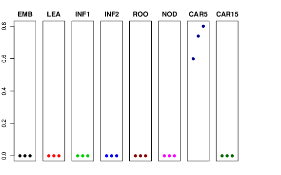 | ROO | Roots from the seedlings (10 cm shoot stage) | 0 | 0 | 0 | 0 |