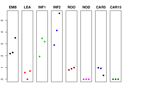 | ROO | Roots from the seedlings (10 cm shoot stage) | 0.789124 | 0.891219 | 0.986195 | 1.2154 |