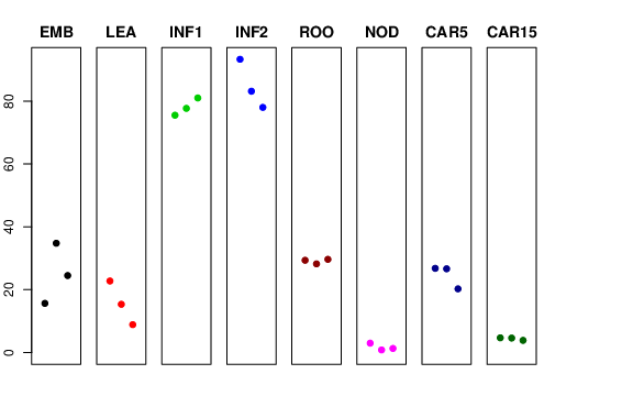 | ROO | Roots from the seedlings (10 cm shoot stage) | 29.3531 | 28.2141 | 29.6551 | 33.8782 |