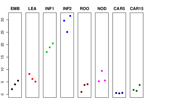 | ROO | Roots from the seedlings (10 cm shoot stage) | 0.988767 | 3.78866 | 4.08716 | 5.06863 |